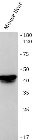 Western blot: Mouse liver stained with ARG45935 anti-PCYT2 antibody at 0.5 μg/ml dilution.