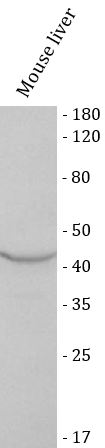 Western blot: Mouse liver stained with ARG45936 anti-PDCD2 antibody at 0.5 μg/ml dilution.