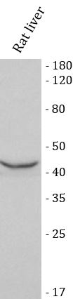 Western blot: Rat liver stained with ARG45936 anti-PDCD2 antibody at 0.5 μg/ml dilution.