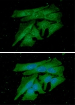 Immunoflorescense: HeLa cell line stained with ARG57038 anti-PDCL3 antibody [8F9] at 1:100 (Green).