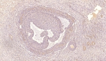 Immunohistochemistry: Paraffin-embedded Human ovarian medulla tissue stained with ARG10807 anti-PDE7A antibody at 1:200 dilution.