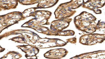 Immunohistochemistry: Human placenta stained with ARG44458 anti-PDF antibody at 2 μg/mL dilution.