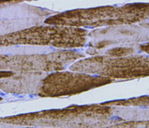 Immunohistochemistry: Paraffin-embedded Mouse skeletal muscle tissue stained with ARG42606 anti-PFKM antibody and counter stained with hematoxylin.