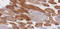 Immunohistochemistry: Human skeletal muscle stained with ARG44722 anti-PFKM antibody at 5 µg/mL dilution.