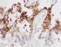 Immunohistochemistry: Paraffin-embedded Human lung cancer tissue stained with ARG40834 anti-PGK1 + PGK2 antibody.