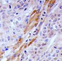 Immunohistochemistry: Formalin-fixed and paraffin-embedded Human hepatocarcinoma tissue stained with ARG55595 anti-PGK1 antibody.