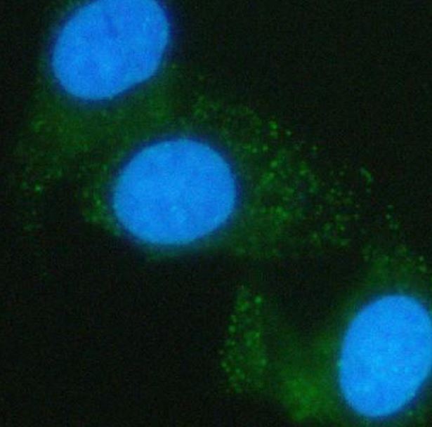 Immunofluorescence: Hela stained with ARG45452 anti-PGM2 antibody at 5 μg/ml dilution.