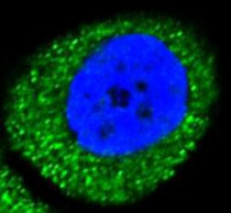 Immunofluorescence: HeLa cells stained with ARG54876 anti-PI3 Kinase Class III antibody (green). DAPI (blue) for nuclear staining.