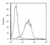 Flow Cytometry: HeLa cells stained with ARG55715 anti-PIP4K2A antibody (right histogram) at 1:25 dilution or isotype control antibody (left histogram), followed by incubation with Alexa Fluor® 488 labelled secondary antibody.