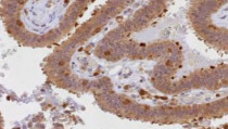 Immunohistochemistry: Human fallopian tube stained with ARG44726 anti-PKC delta antibody at 5 µg/mL dilution.