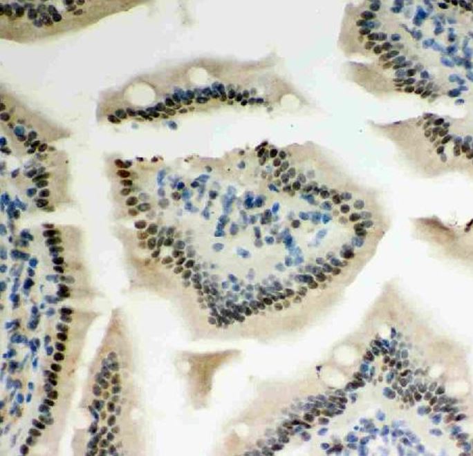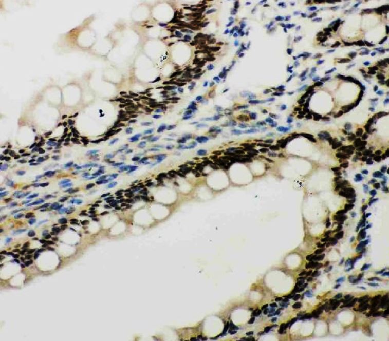 Immunohistochemistry: Mouse intestine stained with ARG45568 anti-PKC epsilon antibody.