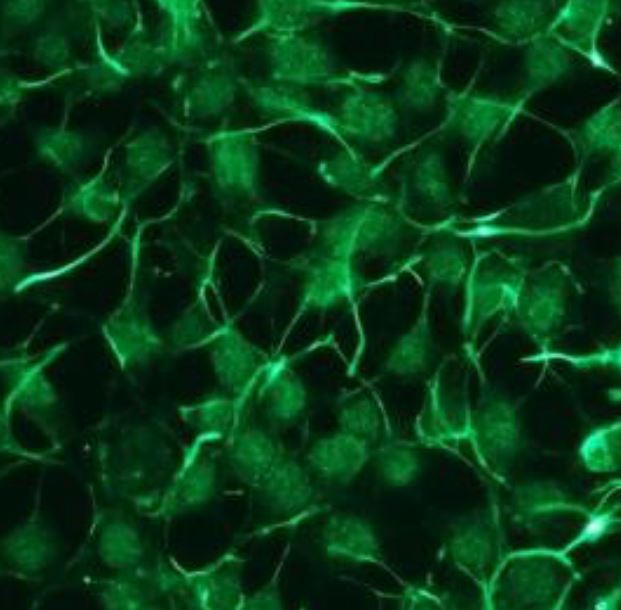 Immunofluorescence: PKC zeta transfected HEK293 cells stained with ARG11175 anti-PKC zeta antibody [R14-K] at 1:200 dilution.