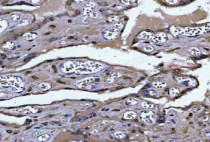 Immunohistochemistry: Human placenta tissue stained with ARG43916 anti-PLEKHA1 / TAPP1 antibody at 2 μg/ml dilution.