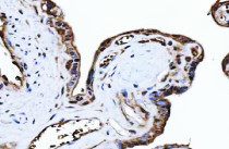 Immunohistochemistry: Human placenta stained with ARG43891 anti-PLEKHG5 antibody at 2 μg/ml dilution.
