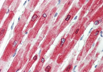 Immunohistochemistry: Paraffin-embedded Human heart tissue. Antigen Retrieval: Steam tissue section in Citrate buffer (pH 6.0). The tissue section was stained with ARG65299 anti-PLN / Phospholamban antibody at 3.75 µg/ml dilution followed by AP-staining.