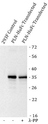 Western blot: 293F stained with ARG46733 anti-PLN / Phospholamban phospho (Ser16) antibody.