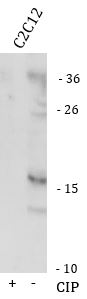 Western blot: C2C12 stained with ARG46733 anti-PLN / Phospholamban phospho (Ser16) antibody.