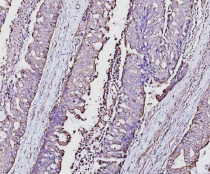 Immunohistochemistry: Human adenocarcinoma of the right colon stained with ARG45605 anti-PLP2 antibody at 2 μg/ml dilution.
