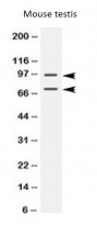 Western blot: Mouse testis lysate stained with ARG58139 anti-PML Protein antibody at 0.5 µg/ml dilution.