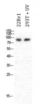 Western blot: 22Rv1 and 293T treated with UV. Cell lysates were stained with ARG66699 anti-PML antibody at 1:1000 dilution.