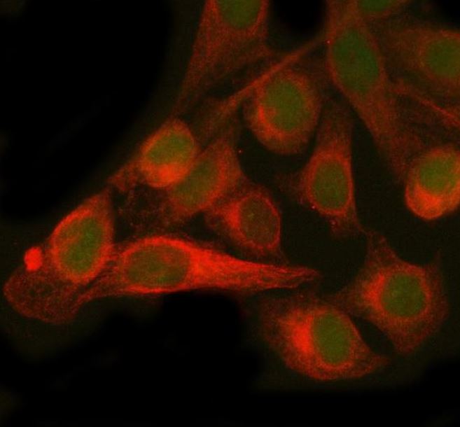Immunofluorescence: Hela stained with ARG45591 anti-PMM2 antibody at 5 μg/ml dilution.