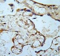Immunohistochemistry: Formalin-fixed and paraffin-embedded Human placenta tissue stained with ARG55442 anti-PON2 antibody.