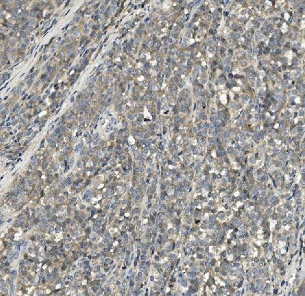 Immunohistochemistry: Human melanoma stained with ARG45590 anti-PPM1E antibody at 1 μg/ml dilution.