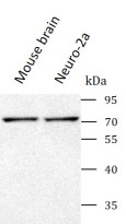 Western blot: Mouse brain and Neuro-2a stained with ARG43928 anti-PPP2R5D antibody at 0.5 μg/mL dilution.