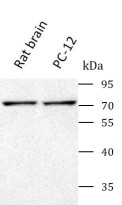 Western blot: Rat brain and PC-12 stained with ARG43928 anti-PPP2R5D antibody at 0.5 μg/mL dilution.