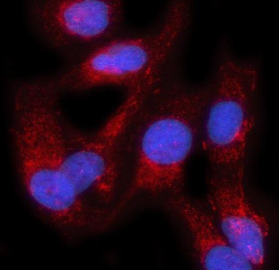 Immunofluorescence: Hela stained with ARG45805 anti-PRAGMIN / SGK223 antibody at 5 μg/ml dilution.