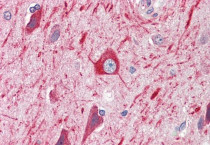 Immunohistochemistry: Paraffin-embedded Human cortex tissue. Antigen Retrieval: Steam tissue section in Citrate buffer (pH 6.0). The tissue section was stained with ARG63776 anti-PRDM11 antibody at 5 µg/ml dilution followed by AP-staining.