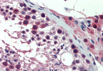 Immunohistochemistry: Paraffin-embedded Human testis tissue. Antigen Retrieval: Steam tissue section in Citrate buffer (pH 6.0). The tissue section was stained with ARG64998 anti-PREX1 antibody at 10 µg/ml dilution followed by AP-staining.