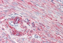 Immunohistochemistry: Formalin-fixed and paraffin-embedded Human uterus, myometrium tissue. Antigen Retrieval: Boil tissue section in Citrate buffer (pH 6.0). The section were stained with ARG64988 anti-PRKCDBP antibody.