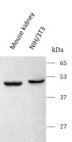 Western blot: Mouse kidney and NIH/3T3 stained with ARG43995 anti-PSMC5 / TRIP1 antibody at 0.5 μg/mL dilution.