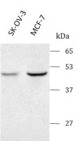 Western blot: SK-OV-3 and MCF-7 stained with ARG43995 anti-PSMC5 / TRIP1 antibody at 0.5 μg/mL dilution.