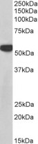 Western Blot: Human Ovary lysate (35 µg protein in RIPA buffer) stained with ARG63356 anti-PTBP1 / PTB antibody at 0.1 µg/ml dilution.