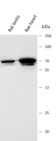 Western blot: Rat testis and Rat heart stained with ARG44565 anti-PTCD1 antibody at 0.5 μg/mL dilution.