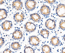 Immunohistochemistry: Human colon stained with ARG44370 anti-PTGR3 antibody at 1:100 dilution.