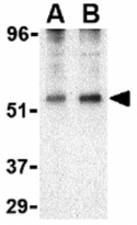 Western blot: EL4 cell lysate stained with ARG56842 anti-Perilipin 3 antibody at (A) 0.5 and (B) 1 µg/ml dilution.