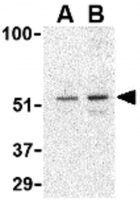 Western blot: Daudi cell lysate stained with ARG56843 anti-Perilipin 3 antibody at (A) 0.5 and (B) 1 µg/ml dilution.