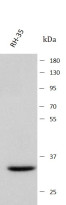 Western blot: RH-35 stained with ARG44472 anti-Pirin antibody at 0.5 μg/mL dilution.