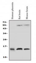 Western blot: 50 µg of samples under reducing conditions. Human placenta, Rat brain and Mouse brain lysates stained with ARG40835 anti-Profilin 2 antibody at 0.5 µg/ml, overnight at 4°C.