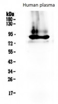 Western blot: 50 µg of Human plasma lysate stained with ARG58569 anti-Prothrombin antibody at 0.5 µg/ml, overnight at 4°C, under reducing conditions.