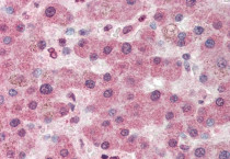 Immunohistochemistry: Paraffin-embedded Human liver tissue. Antigen Retrieval: Steam tissue section in Citrate buffer (pH 6.0). The tissue section was stained with ARG64474 anti-Pyruvate Carboxylase antibody at 5 µg/ml dilution followed by AP-staining.