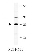 Western blot: 35 µg of NCI-H460 cell lysate stained with ARG40360 anti-RAB27B antibody.