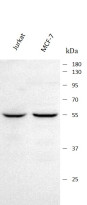 Western blot: Jurkat and MCF-7 stained with ARG44450 anti-RAB3IP antibody at 0.5 μg/mL dilution.