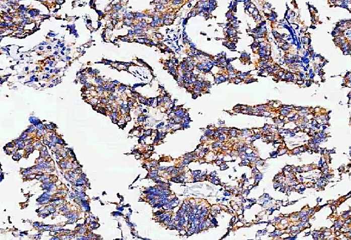 Immunohistochemistry: Human ovarian serous adenocarcinoma stained with ARG44450 anti-RAB3IP antibody at 2 μg/mL dilution.