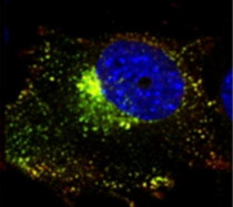 Immunofluorescence: Hepa1-6 cells were fixed with 4% PFA. Cells were stained with ARG42510 anti-RAB5A antibody (green) at 1:50 dilution. Nuclear staining (blue).