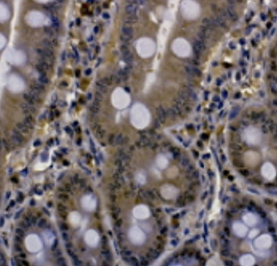Immunohistochemistry: Mouse Intestine stained with ARG42510 anti-RAB5A antibody at 1:250 dilution.
