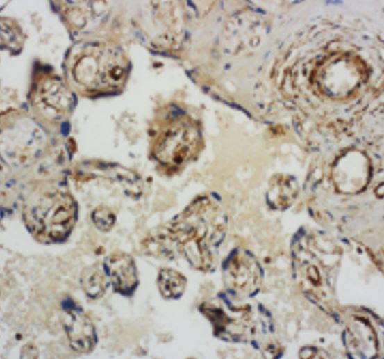 Immunohistochemistry: Human placenta stained with ARG42512 anti-RAB5C antibody at 1:500 dilution.